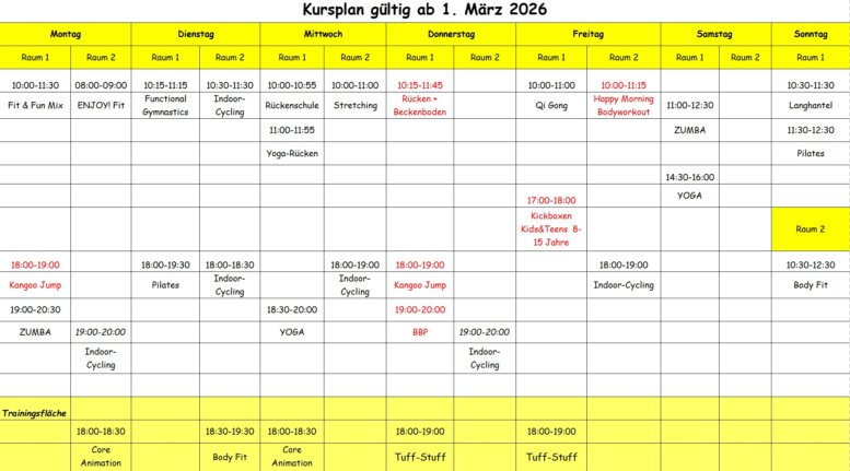 Ab 19.01.2026 ändert sich unser Kursplan!!!