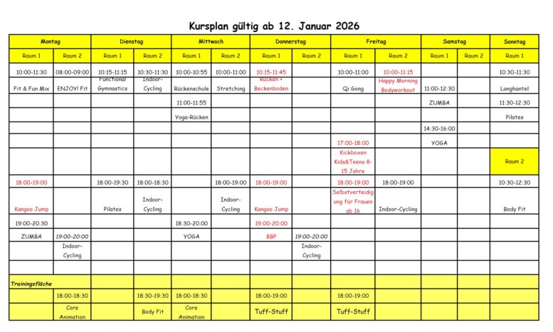Ab 12.01.2026 ändert sich unser Kursplan!!!